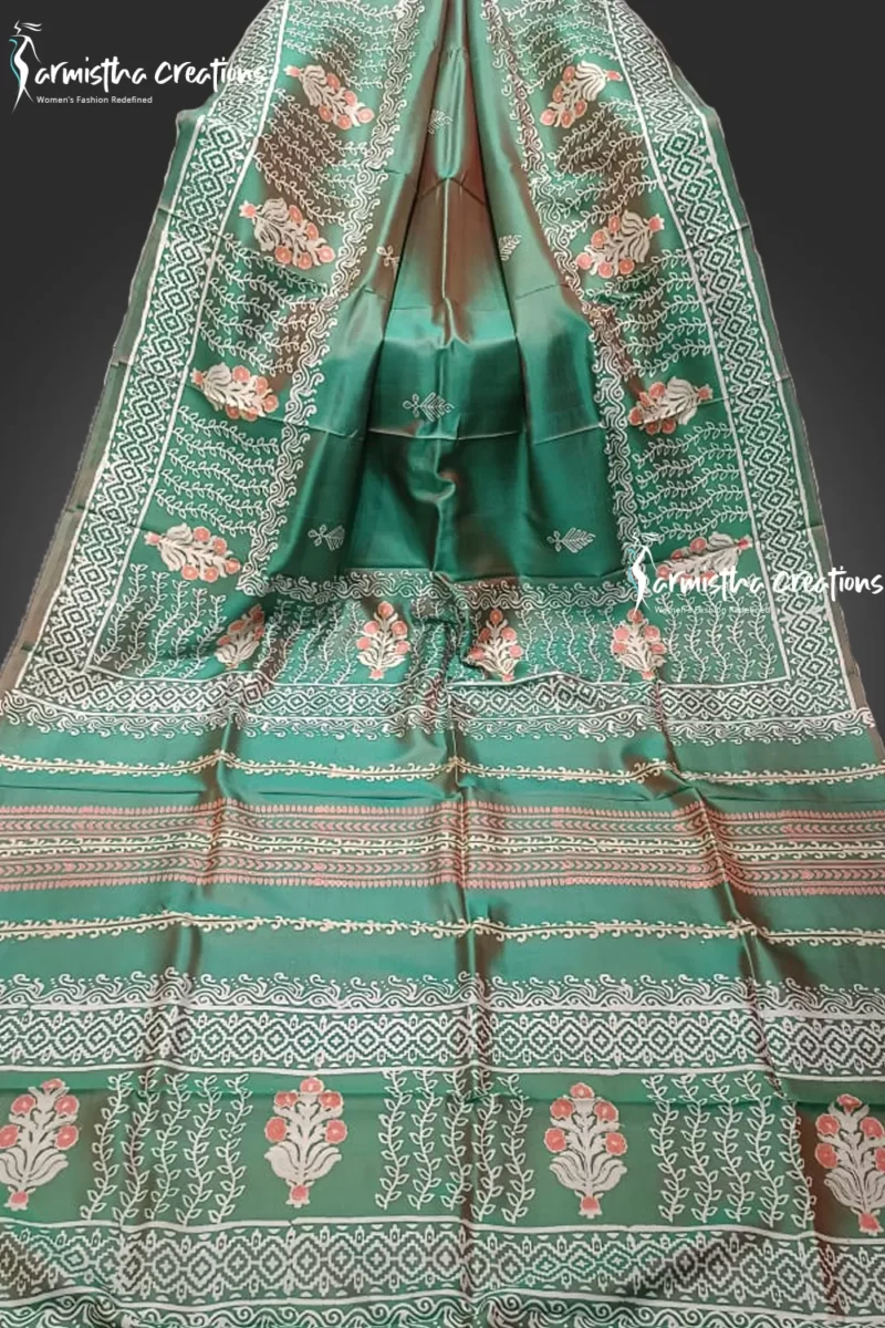 Hand-Block Printed Pure Bishnupuri Katan Silk Saree