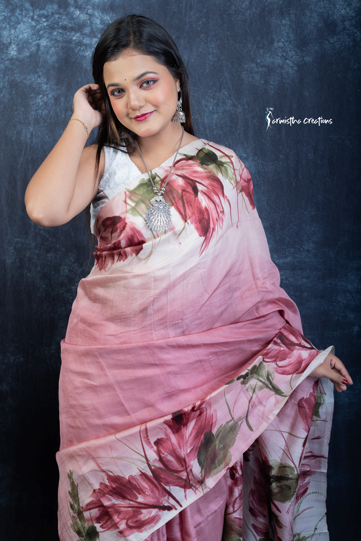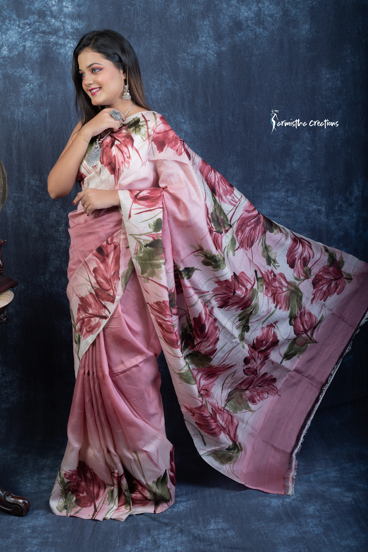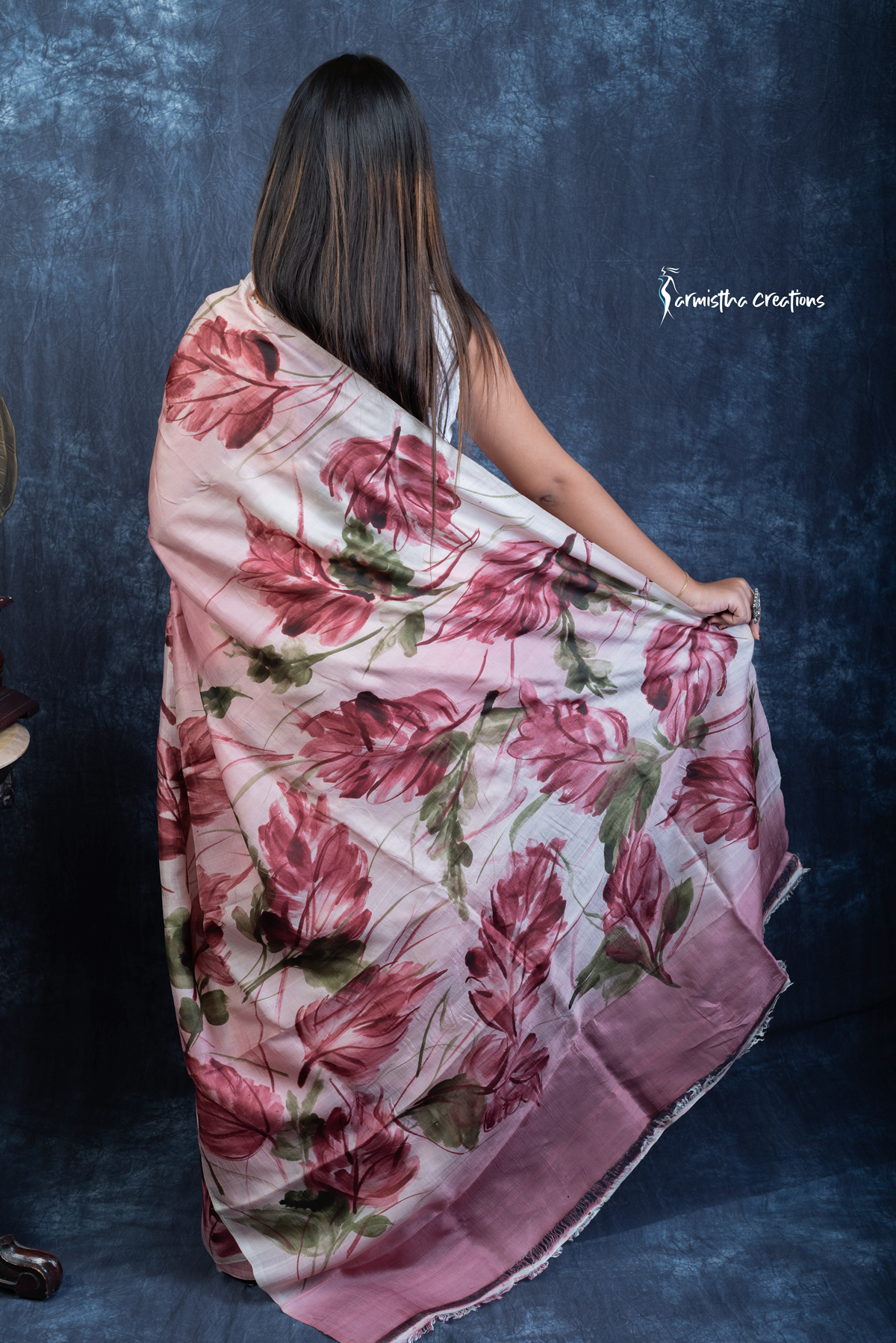 Lightweight and effortlessly elegant, the saree flows like poetry and is perfect for festive occasions, cultural events, or intimate gatherings. Crafted by skilled artisans, each piece is uniquely hand-painted and carries the charm of wearable art—making it a statement piece in any wardrobe.