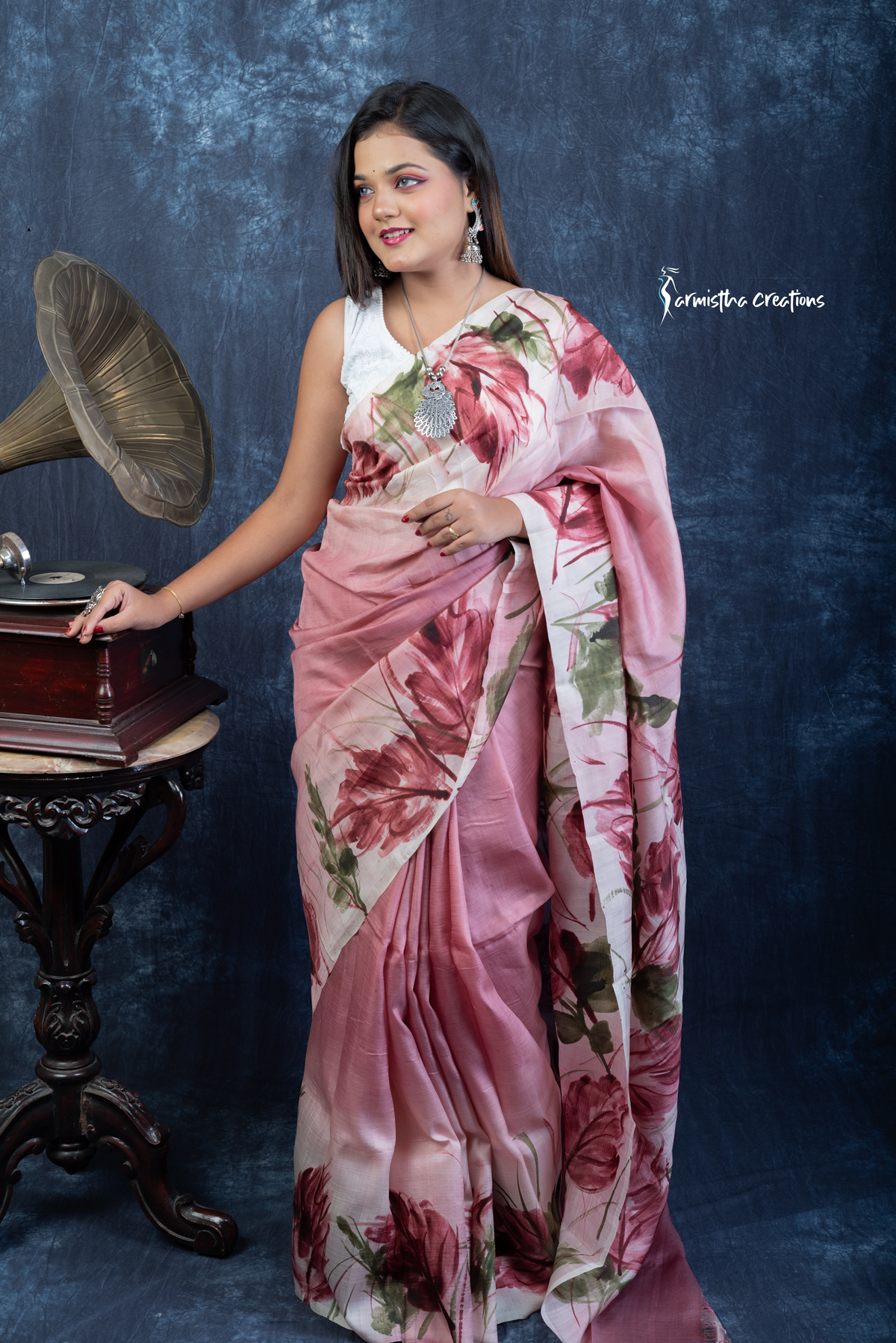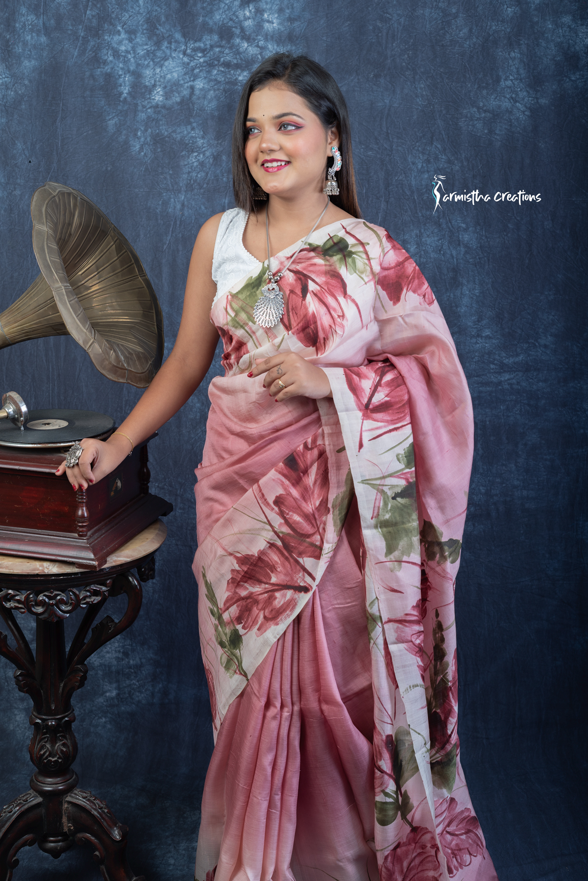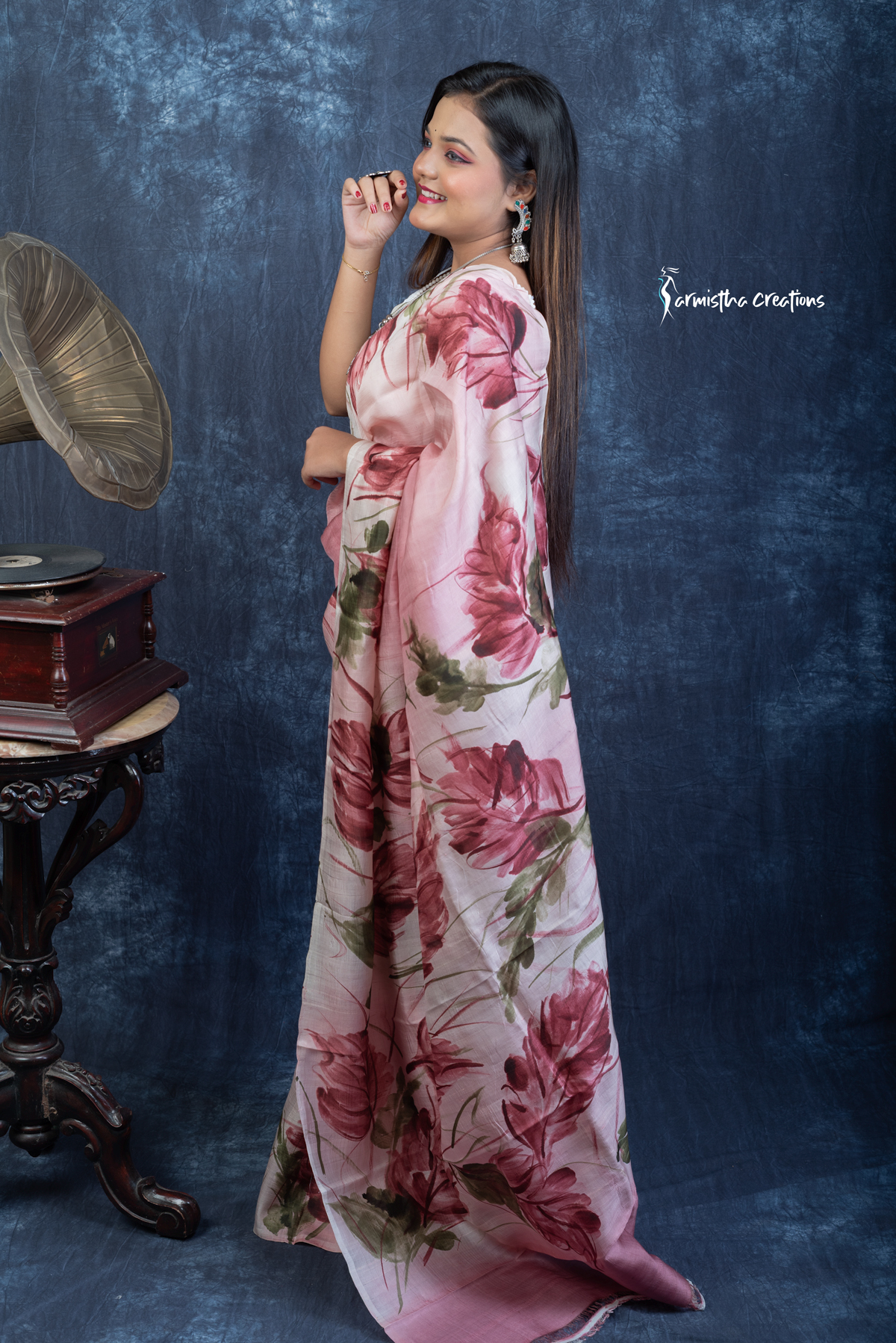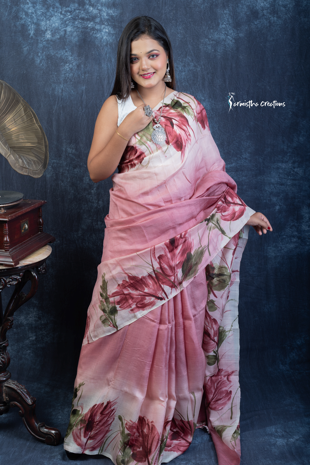 Lightweight and effortlessly elegant, the saree flows like poetry and is perfect for festive occasions, cultural events, or intimate gatherings. Crafted by skilled artisans, each piece is uniquely hand-painted and carries the charm of wearable art—making it a statement piece in any wardrobe.
