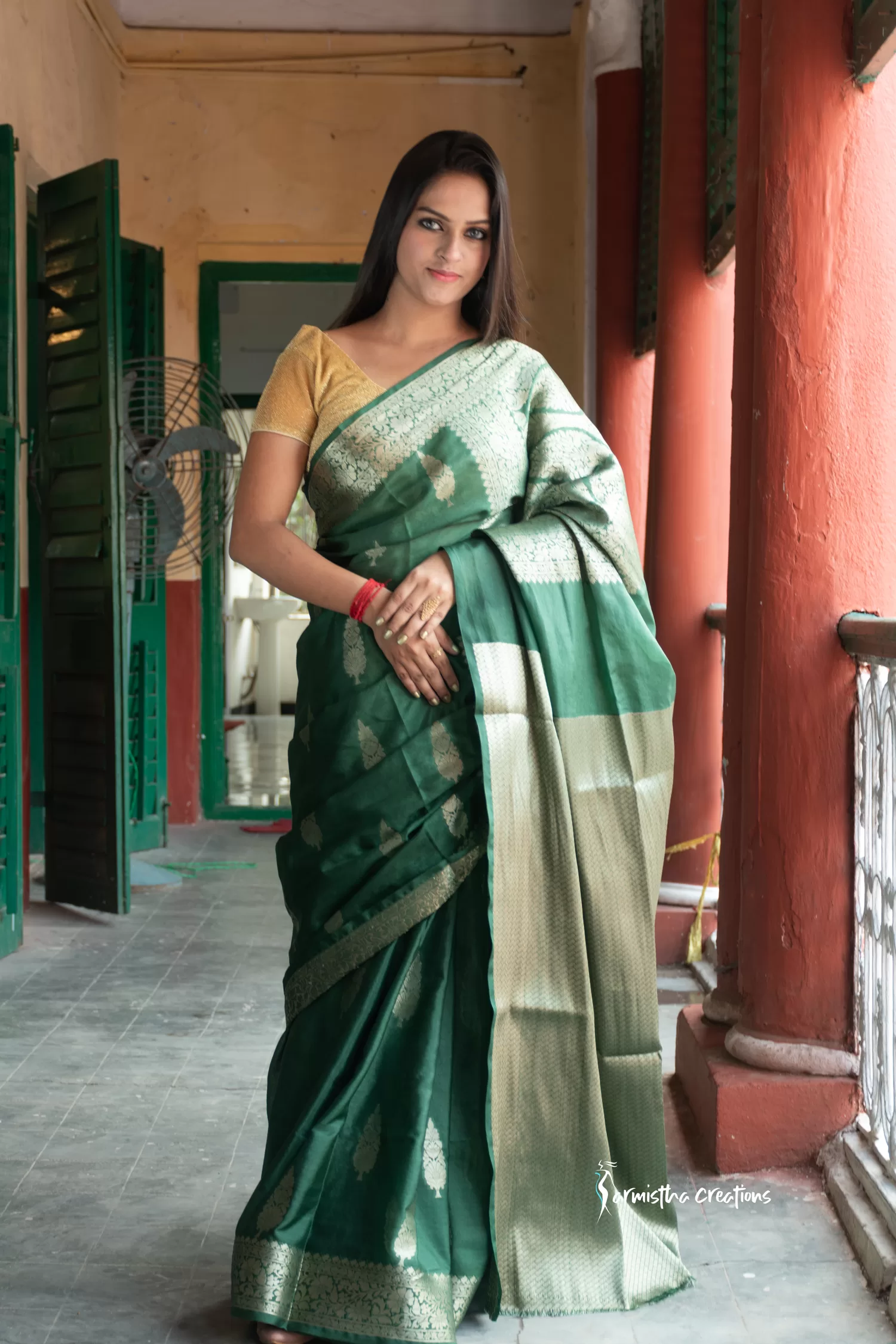 Georgette Silk Saree with Benarasi Work (Bottle Green)