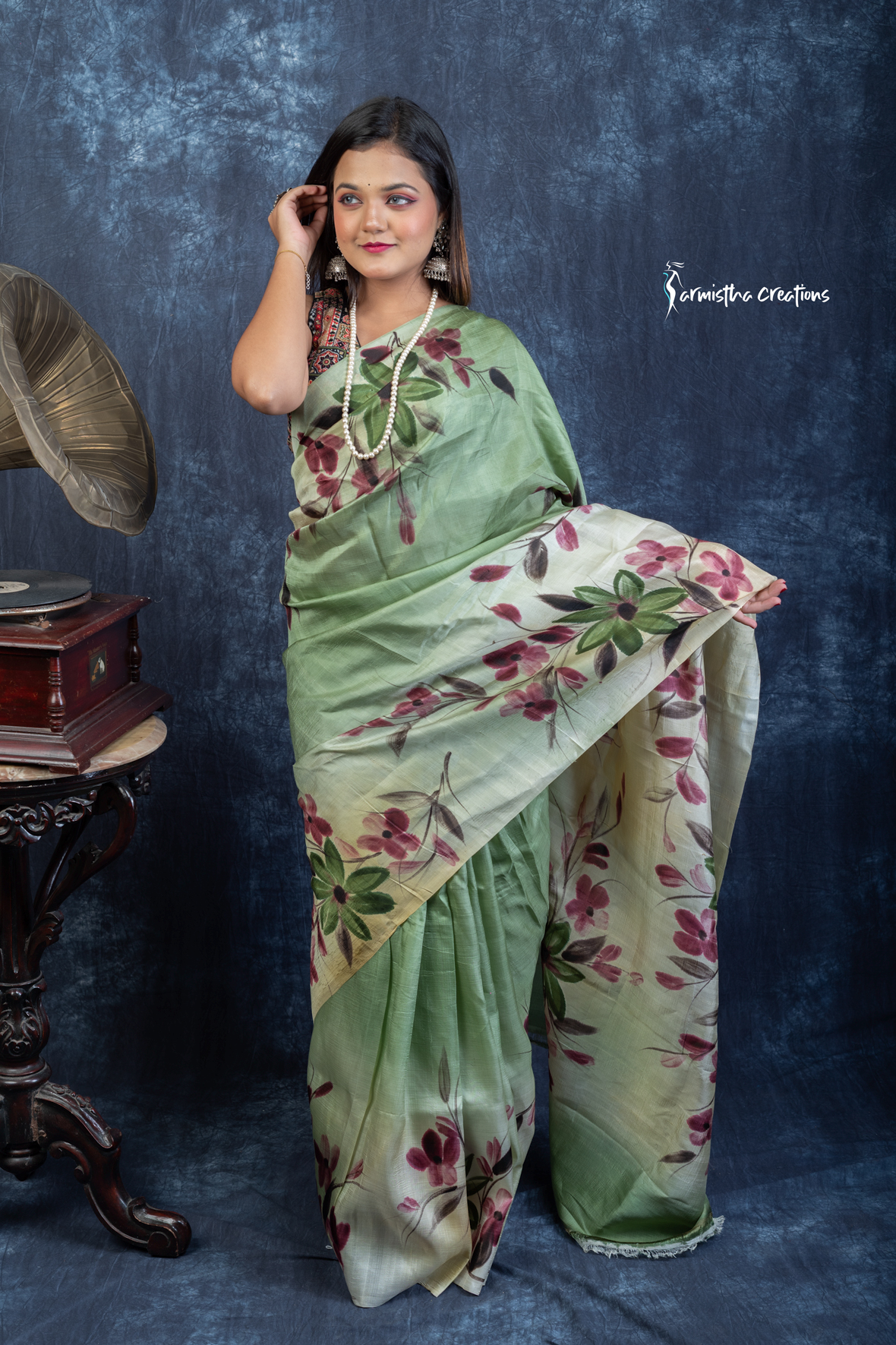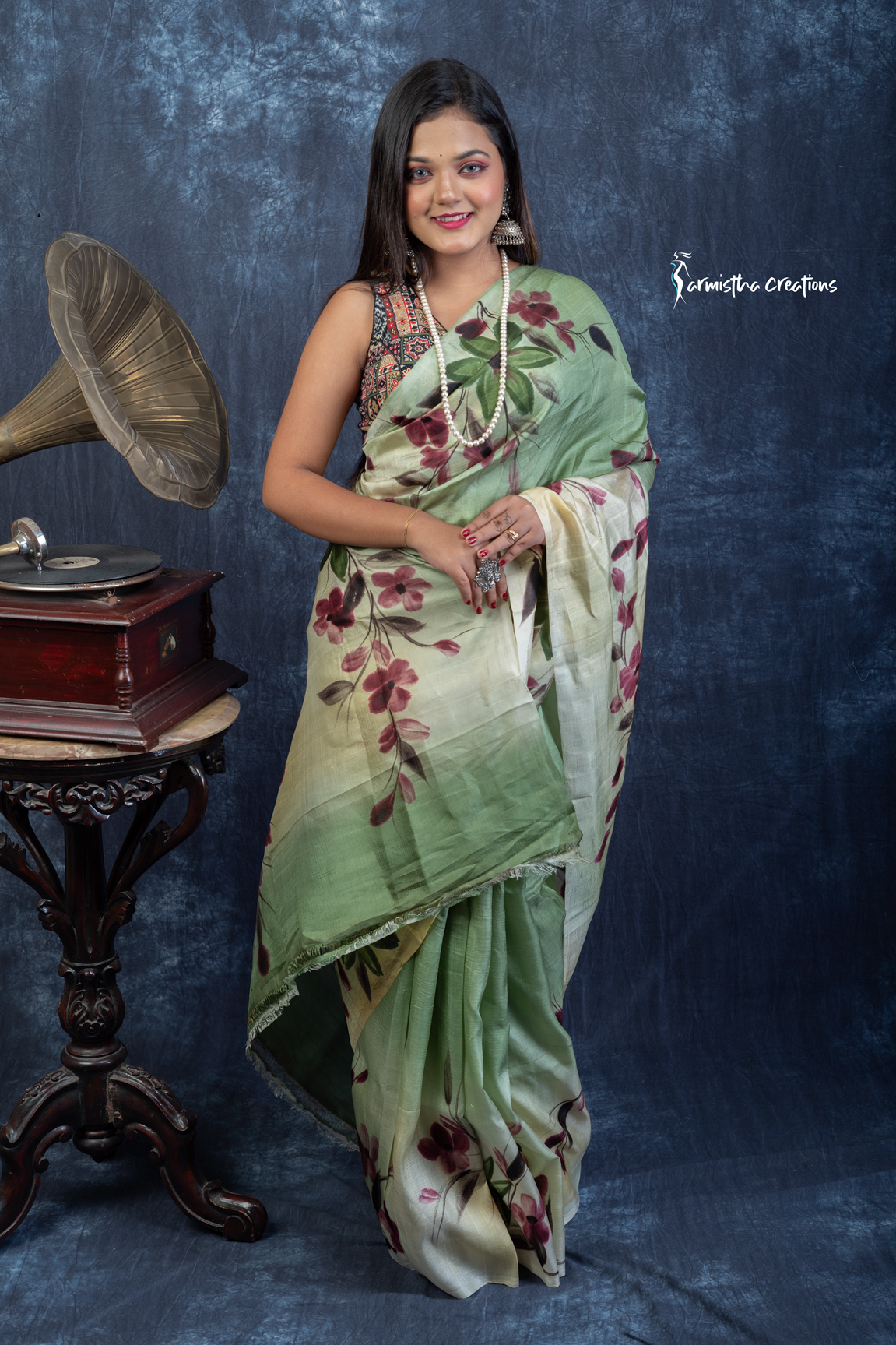 Ideal for daytime occasions, art gatherings, and cultural celebrations, this saree is more than attire—it’s wearable art. Each piece is uniquely hand-painted by skilled artisans, making it a one-of-a-kind expression of tradition. This hand-painted Bishnupuri silk saree blends nature, heritage, and femininity with timeless beauty.
