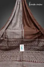 Wrap yourself in the earthy elegance of tradition with our “Whispers of Cocoa Earth” hand-painted Murshidabad silk saree. Drenched in a rich coffee-brown hue and adorned with intricate white leaf motifs and geometric strokes, this saree blends timeless craft with modern flair.